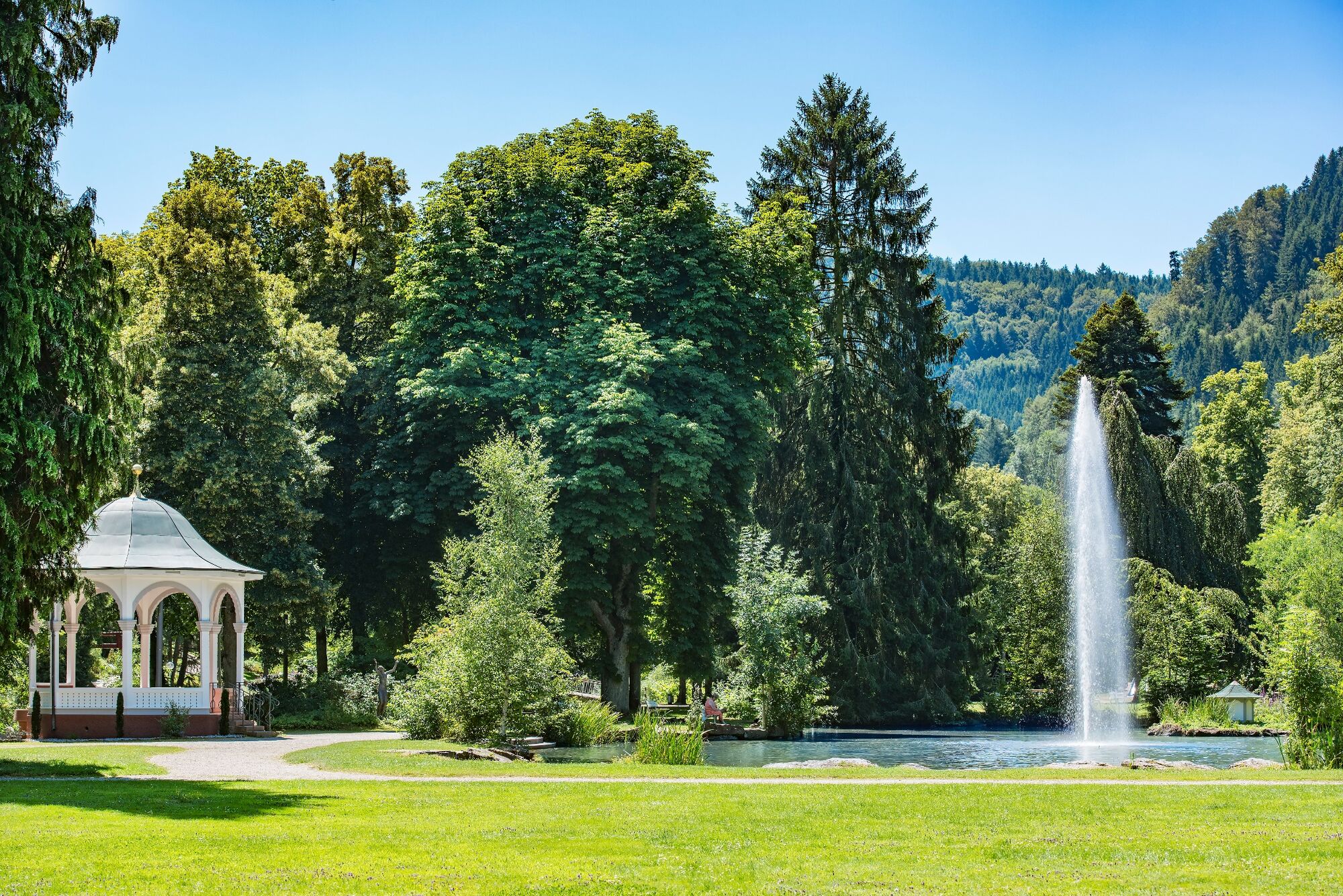 Von der Glücksgemeinde Schömberg geht es zunächst durch den weitläufigen Kurpark zum Aussichtsturm...