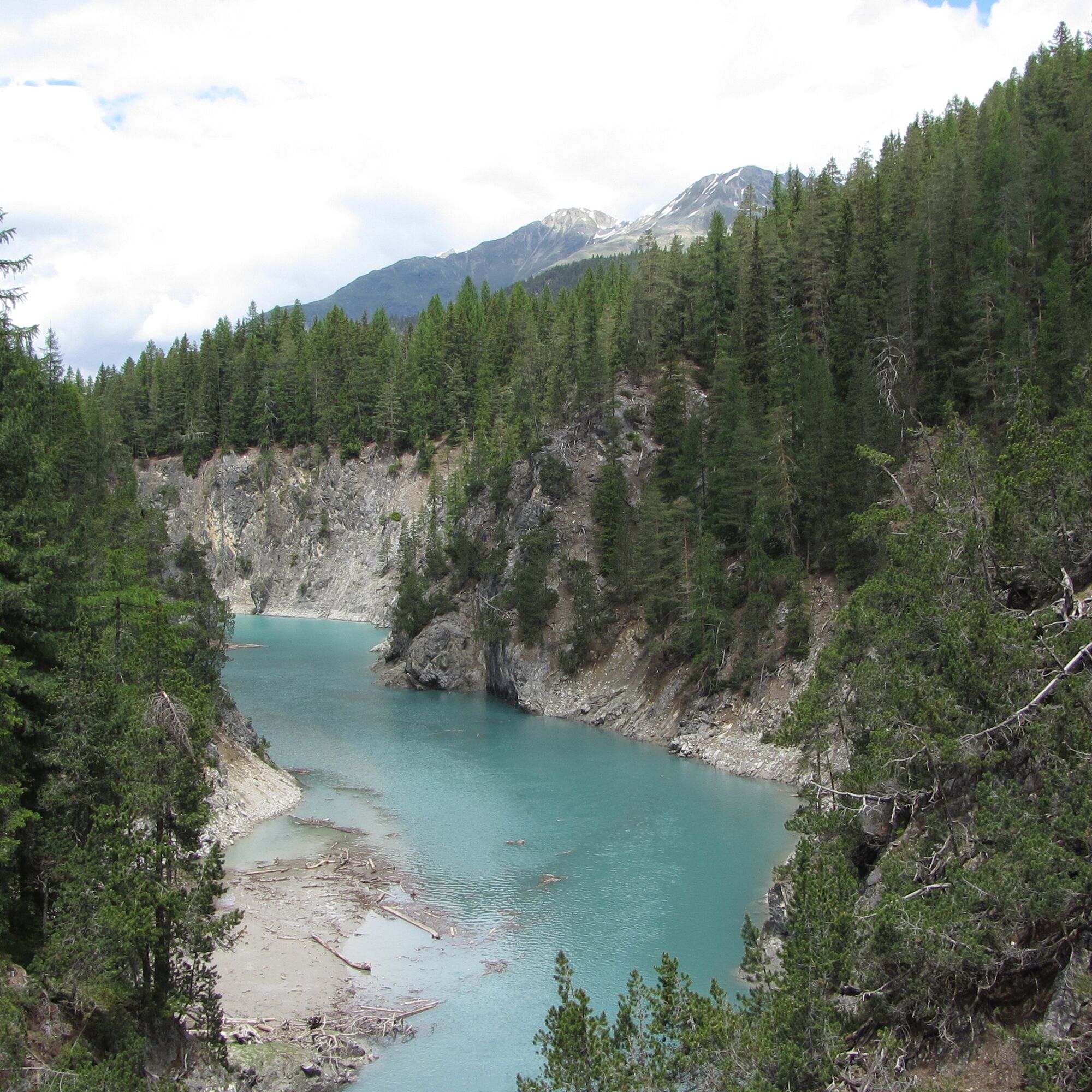 After the Chamanna Cluozza, the ascent to the Murtersattel begins. Zigzag through pine forests to the grassy slopes where ibex often graze and marmots sun themselves. From here you can also see the famous rock plate with the dinosaur tracks. Now the trail slowly climbs uphill. On the other side of the valley you can see the Piz Quattervals and look deep into the Val Sassa with the block glacier. At the Murtersattel, the descent begins to the plateau of Plan dals Poms and continues through forest sections towards the small clearing Plan Praspöl. After a few steps you reach the bridge in the Spölschlucht gorge. A last, steep ascent of about 120 metres in altitude leads to the car park and the «Vallun Chafuol» post bus stop on the Ofenpass road. From here you can take the PostBus to Il Fuorn or the Ofenpasshöhe at hourly intervals. Or continue individually on foot via Grimmels to il Fuorn (approx. 2.5 h) and by PostBus to the Ofenpasshöhe (Süsom Givè).