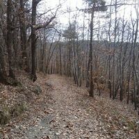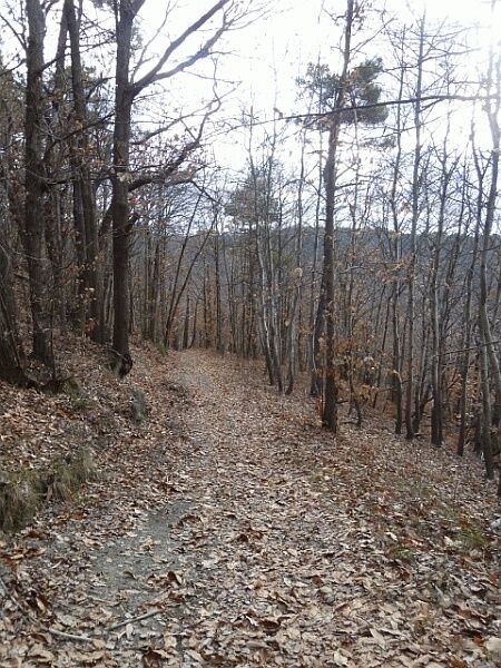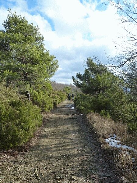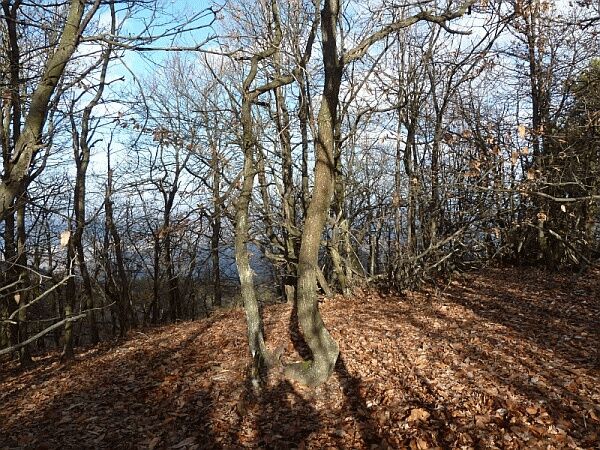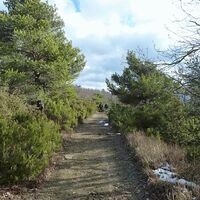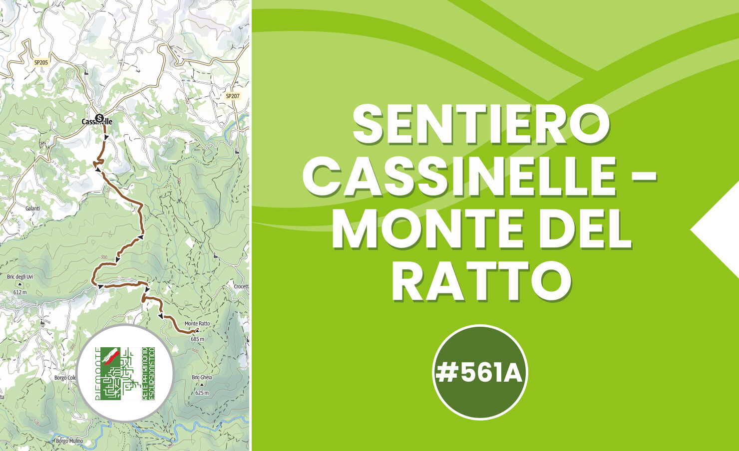 Superati un tornante e due abitazioni il cammino giunge ad un trivio dove lascia la carrareccia e svolta a sinistra prendendo la mulattiera dal fondo roccioso in salita; lasciato il 561, il sentiero sale fino alla boscosa cima del Monte Ratto.