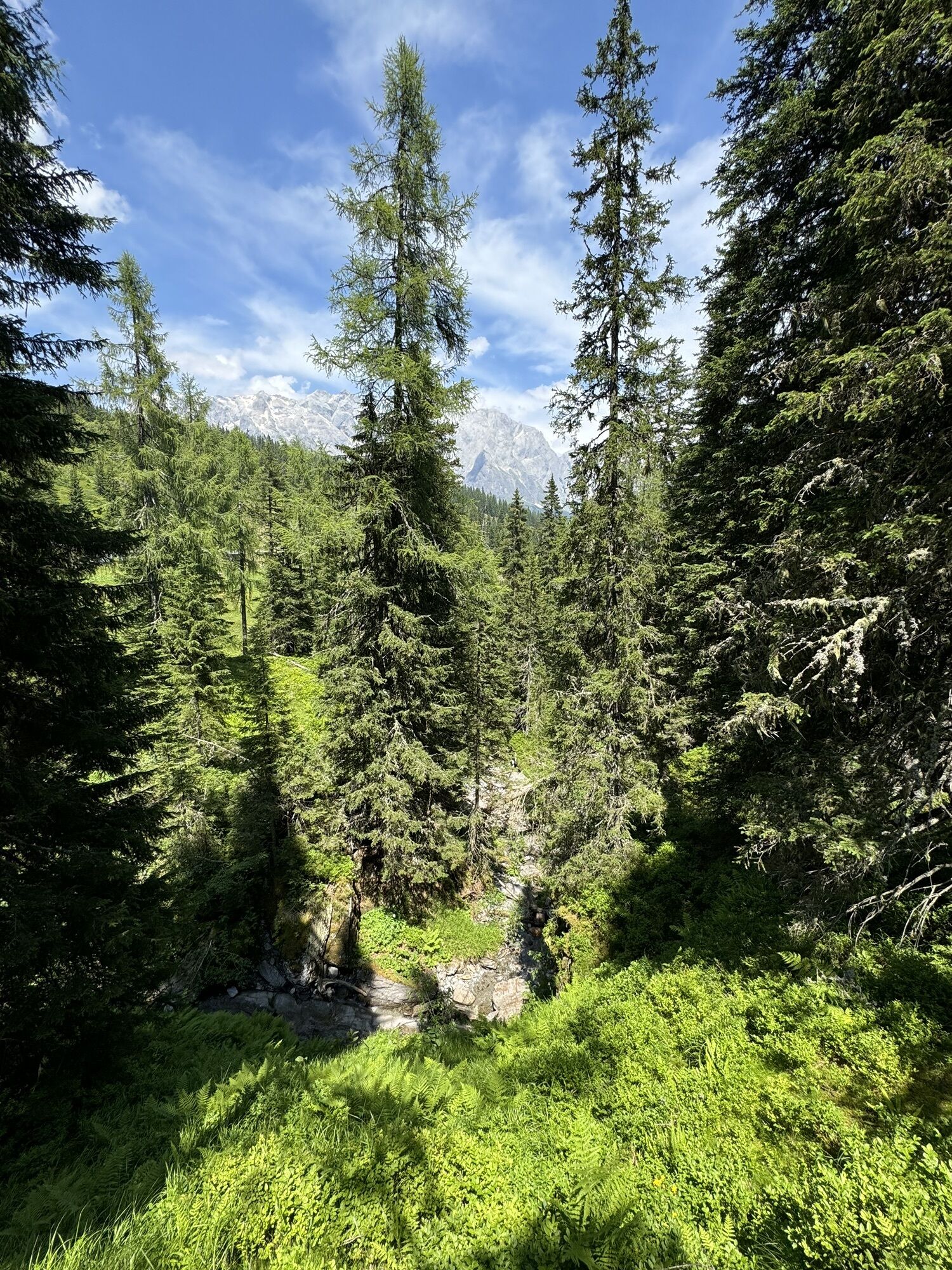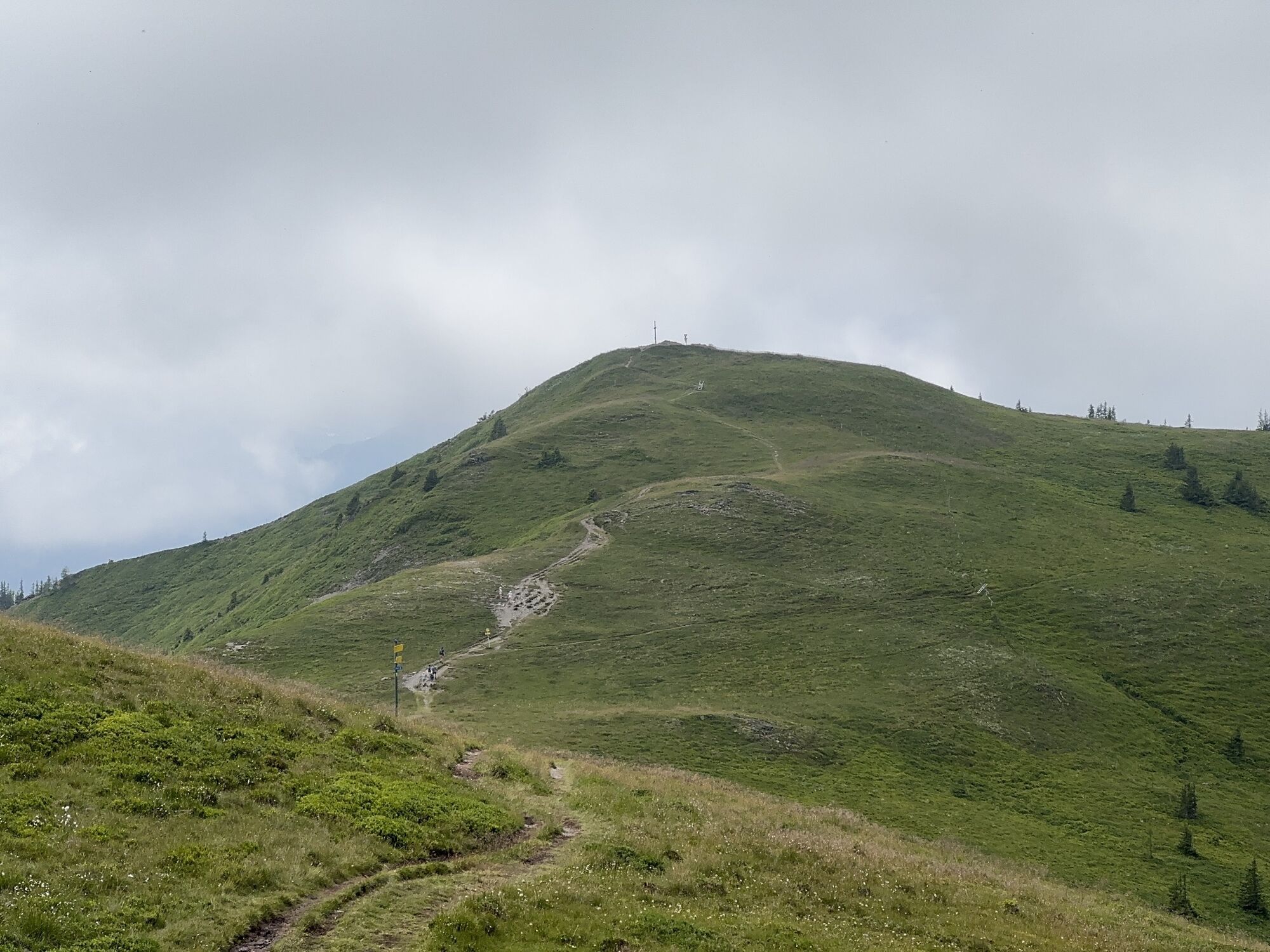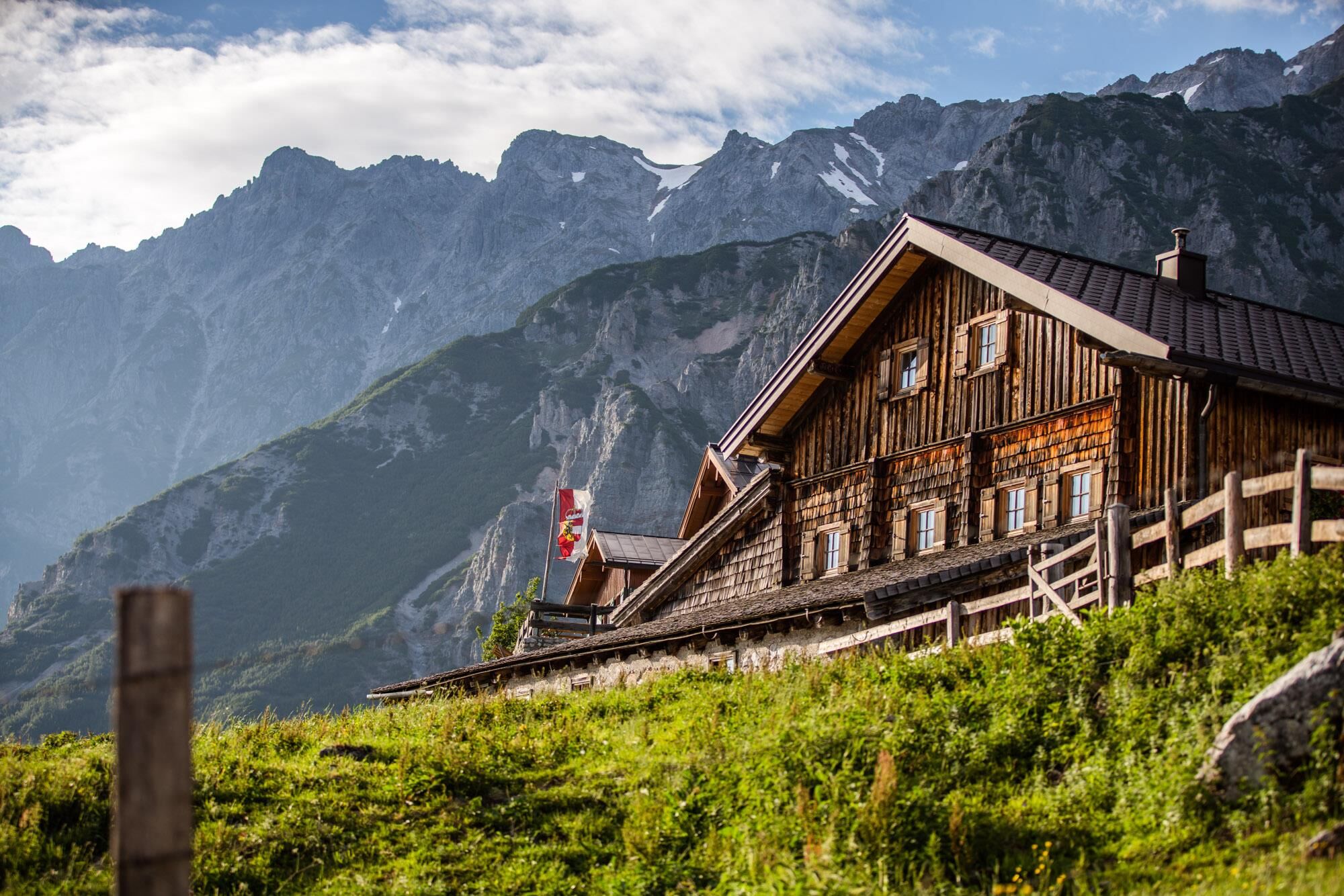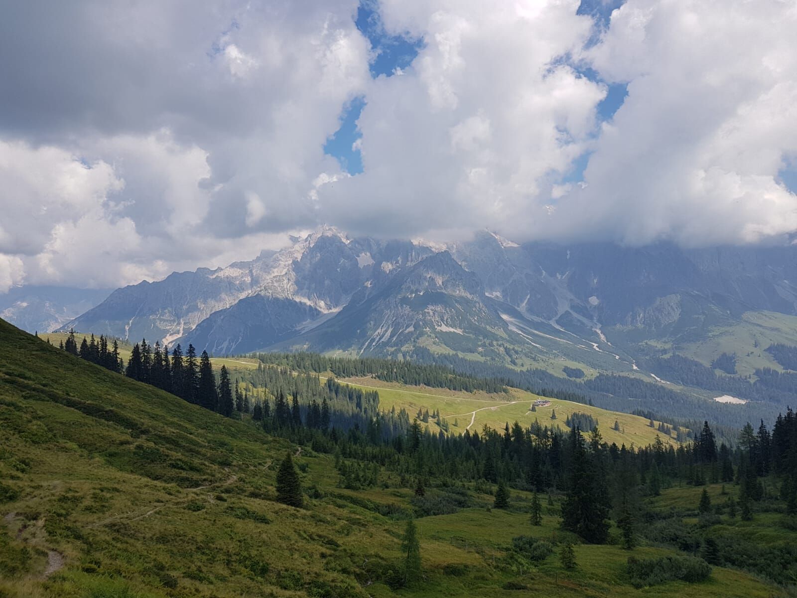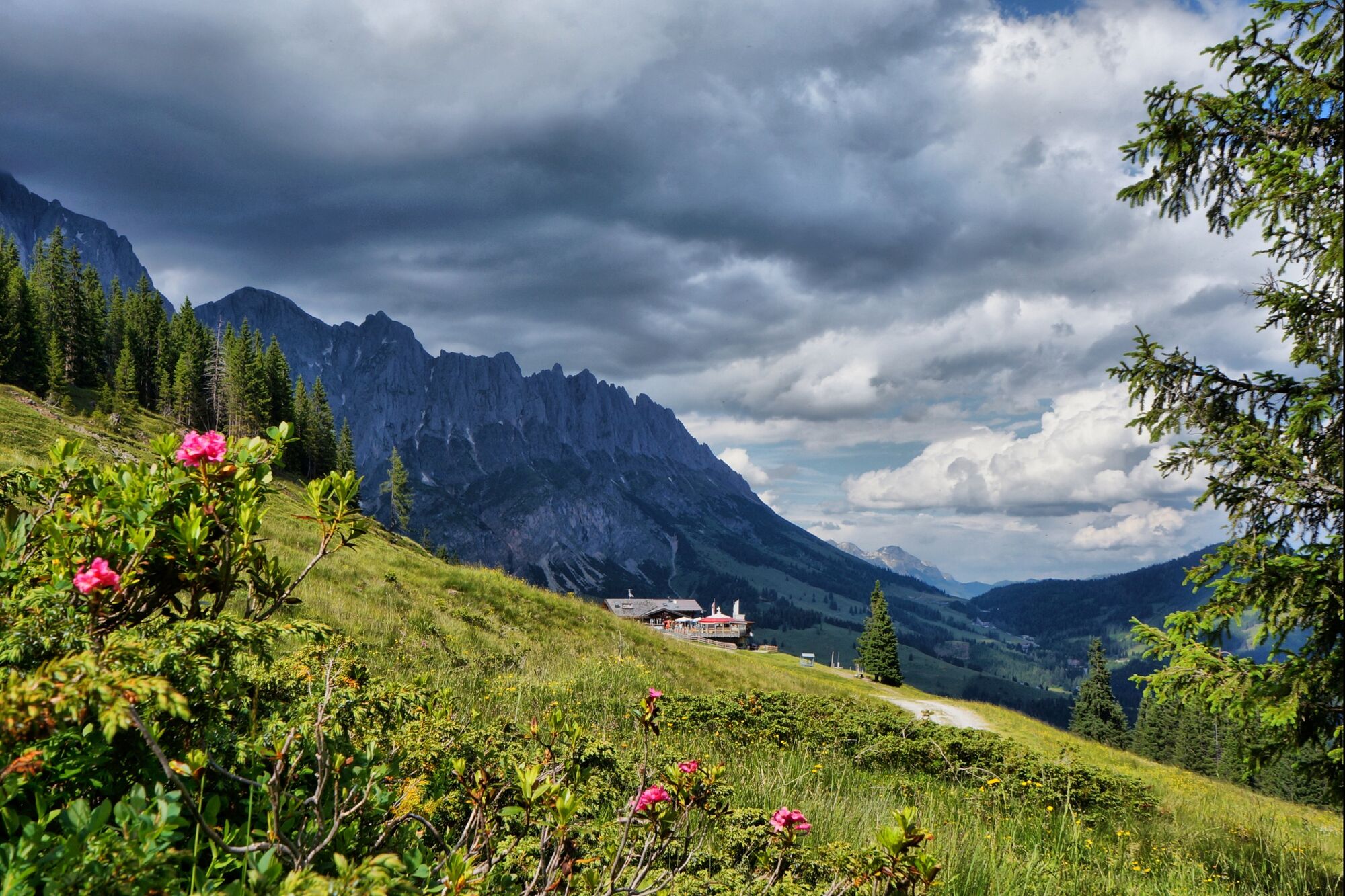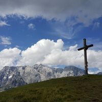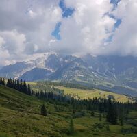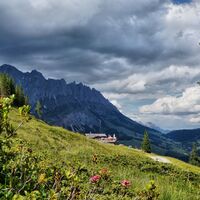After a short descent, you reach the Dientner Sattel. From there, the path leads along the main road slightly uphill towards the Dientalm. Cross the road and continue your hike past the Dientalm. Follow...