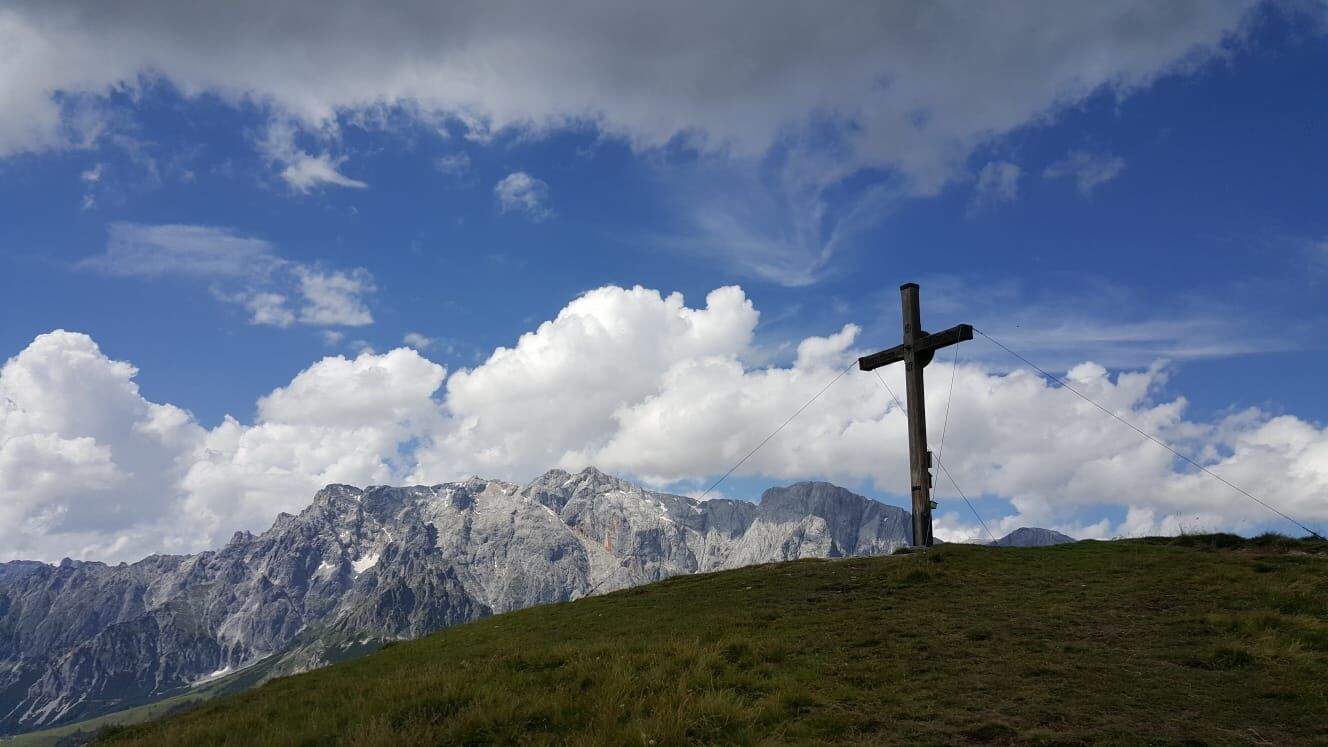 After a short descent, you reach the Dientner Sattel. From there, the path leads along the main road slightly uphill towards the Dientalm. Cross the road and continue your hike past the Dientalm. Follow a forest road to the Tiergartenalm, pass the Klinglbergalm and cross a forest to the ridge below the Schneebergkreuz. There you come to trail no. 15, which takes you over the ridge to the Schneebergkreuz and finally to the valley station of the Karbachalmbahn. On days when the cable car is in operation, you can shorten the descent and save an hour's walking time. Use the hiking bus for the return journey to Mühlbach.