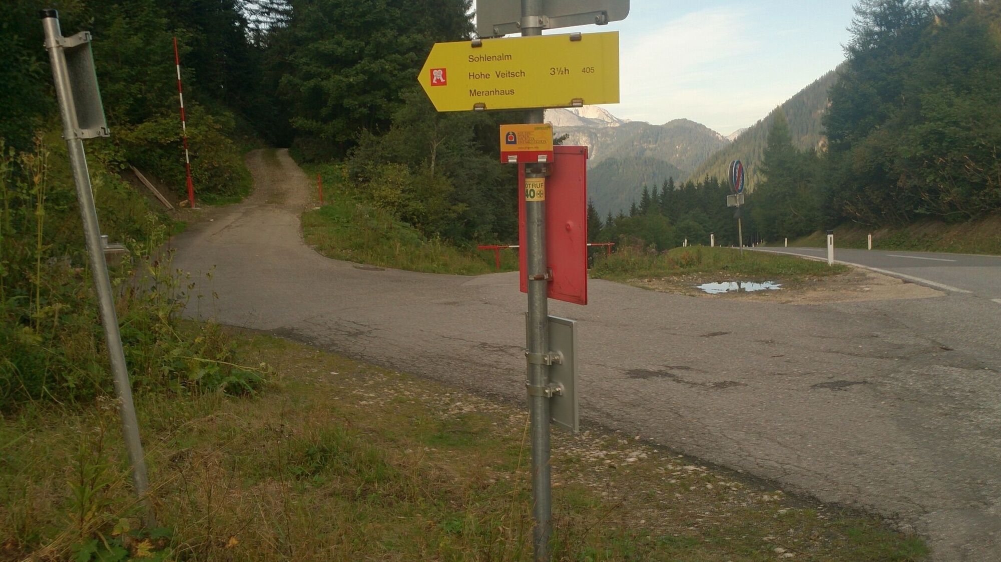Der gut gekennzeichnete Weg (405) beginnt direkt auf der Passhöhe am Niederalpl.