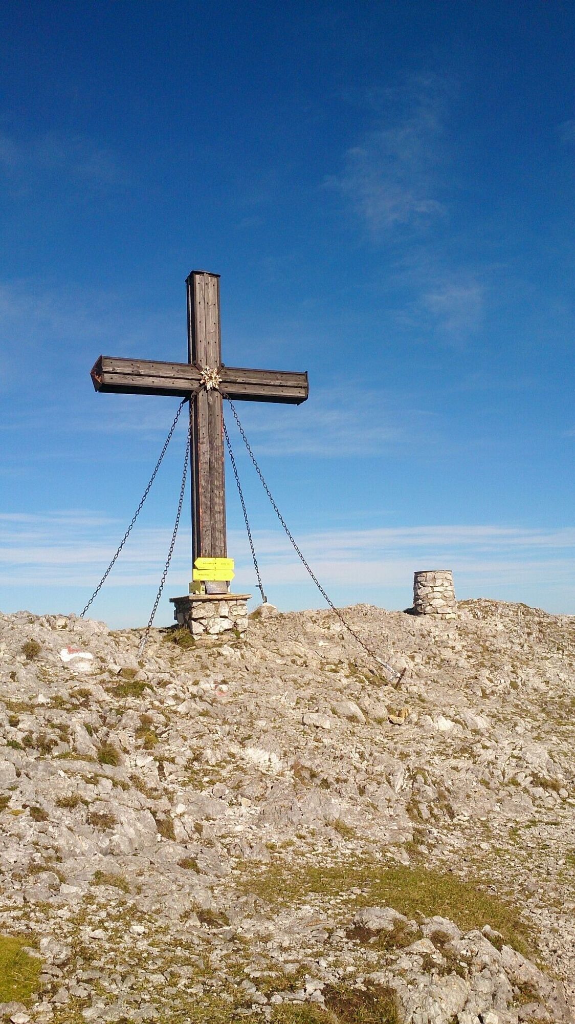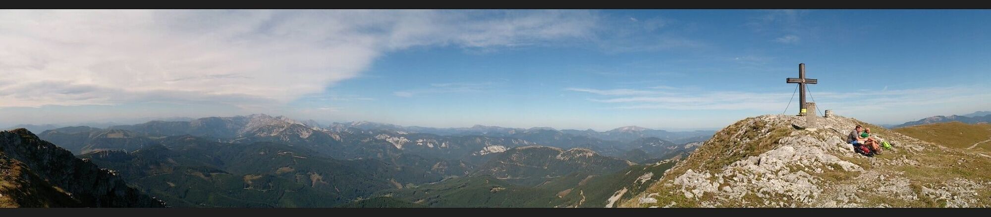 Fotoapparat nicht vergessen - wunderschöner Rundumblick in die umliegende Bergwelt vom Gipfelkreuz.