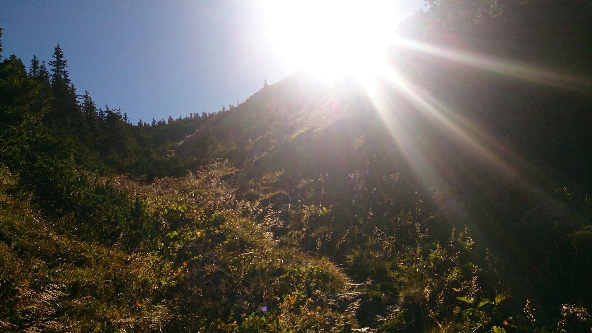 Wir starten unsere Tour auf der Passhöhe am Niederalpl (1.221 m). Zuerst folgen wir einem Waldweg zur Sohlenalm. Auf der Sohlenalm angekommen geht es über eine Forststraße, dann links in den Wald hinein, danach ein kurzes Stück über einen Almboden und wieder entlang einer Forststraße weiter, die in den Wildkammsteig zwischen Wildkamm und Hohe Veitsch mündet. Entlang dem Steig hat man immer wieder einen Blick auf das entfernte Gipfelkreuz. Nach der langen Querung entlang dem Steig gelangen wir nun über einen steileren Anstieg bis zur Gingatzwiese. Dort angelangt folgen wir dem Weg nun rechterhand (links könnte man zum Großen Wildkamm abzweigen) weiter hinauf bis zum Veitschplateau, wo es dann südwärts zum bereits sichtbaren Gipfelkreuz der Hohen Veitsch (1.981 m) geht.