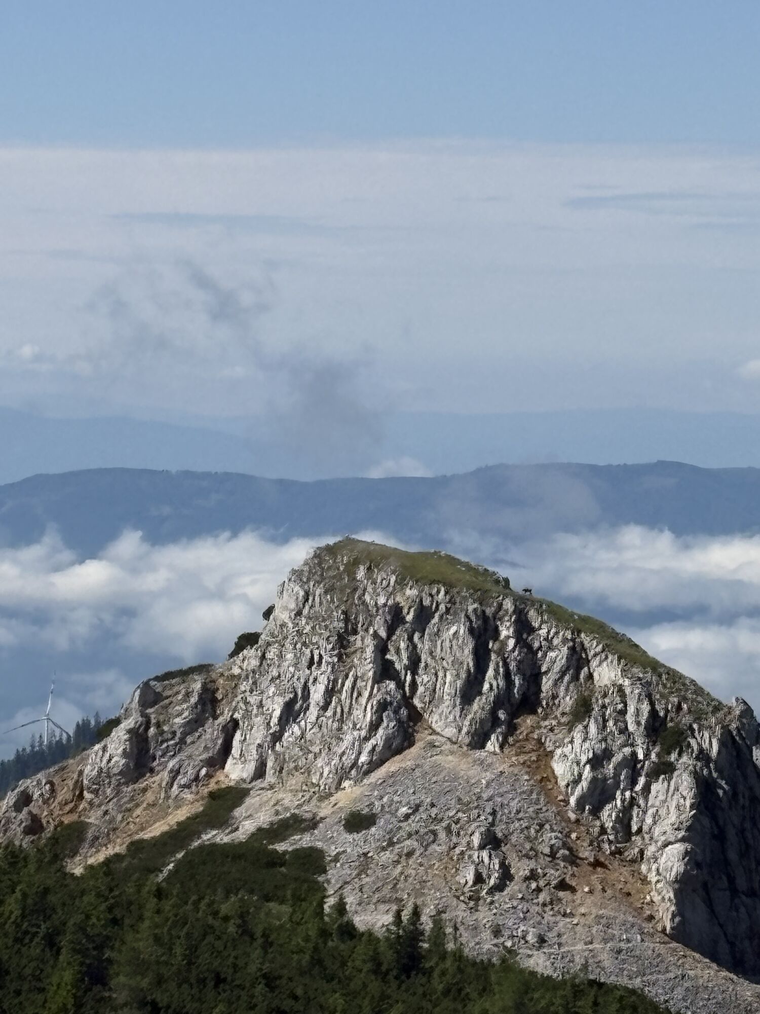 Ausgangspunkt ist das Wh. Hiaslegg, 1154 m, erreichbar über Tagöß/Pichl Großdorf. Den Hochturm, 2081m, zu besteigen blieb leider unerfüllt, lediglich auf seinem östlichen namenlosen Nachbarn konnte ich einen Blick hinüber werfen.