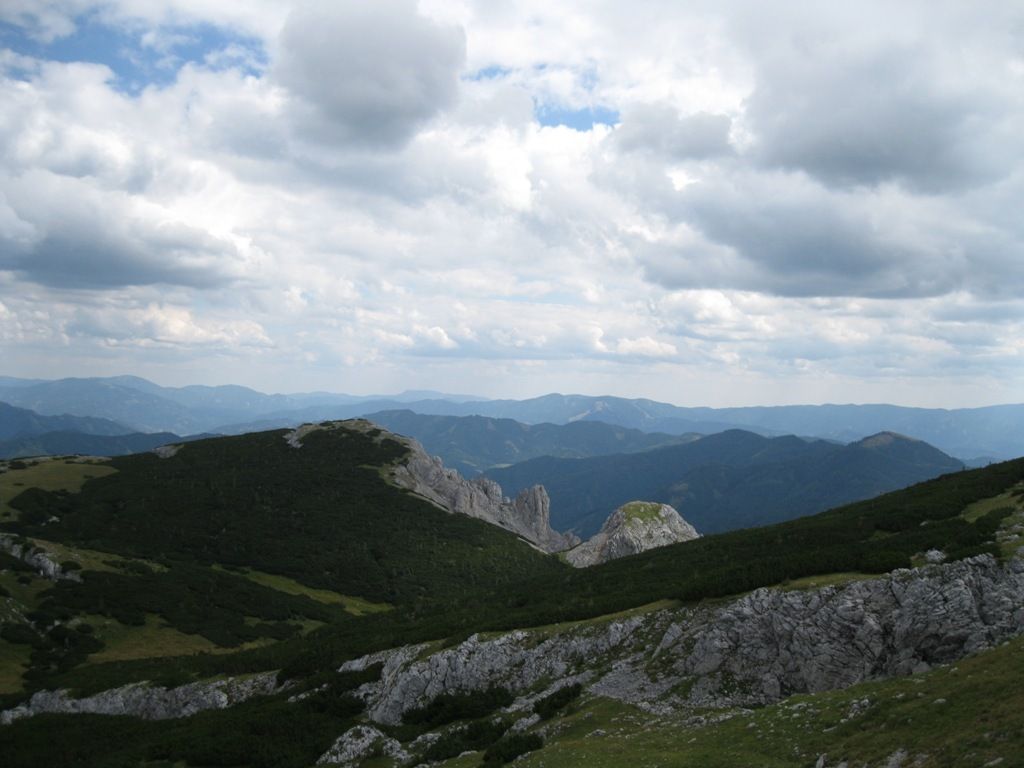 Schon voriges Jahr, auf meiner 11. Etappe des Weitwanderweges 01 (Voisthalerhütte - Sonnschienhütte), ist mir der südliche Gebirgszug des Hochschwabs Trenchtling bei Gewitterstimmung von der Sonnschienalm aufgefallen.