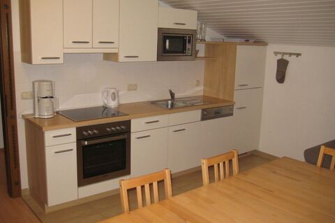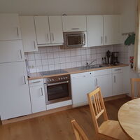 Apartment 2 im Haupthaus (47 qm): Wohnraum mit Küche und Schlafsofa für 2 Personen, 1 Schlafzimmer (1 Dreibett), 1 Bad, 1 WC, Vorraum, Balkon. Maximalbelegung 5 Personen.